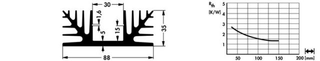 Koelprofiel 88x37,5x35mm met universele boring - zwart